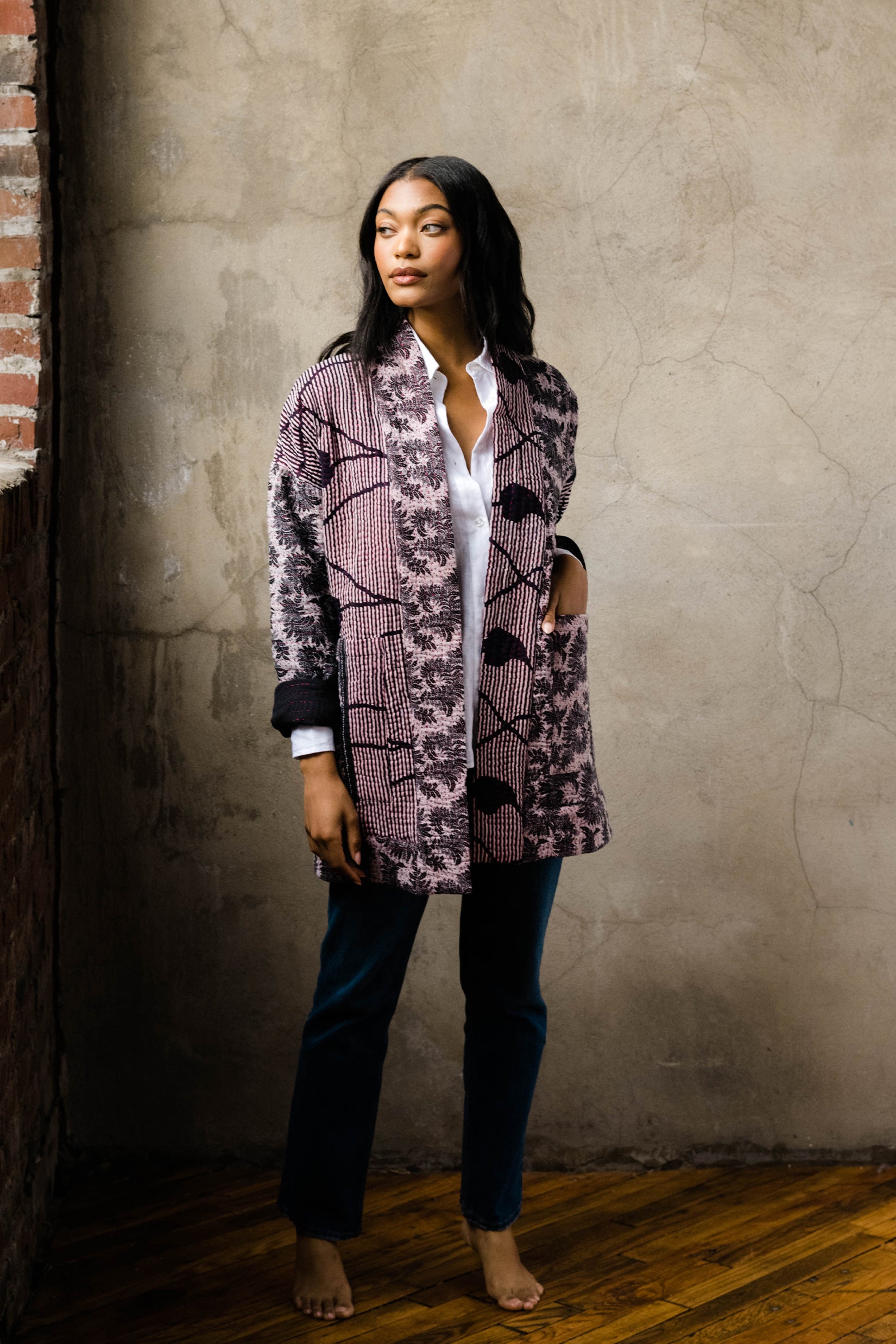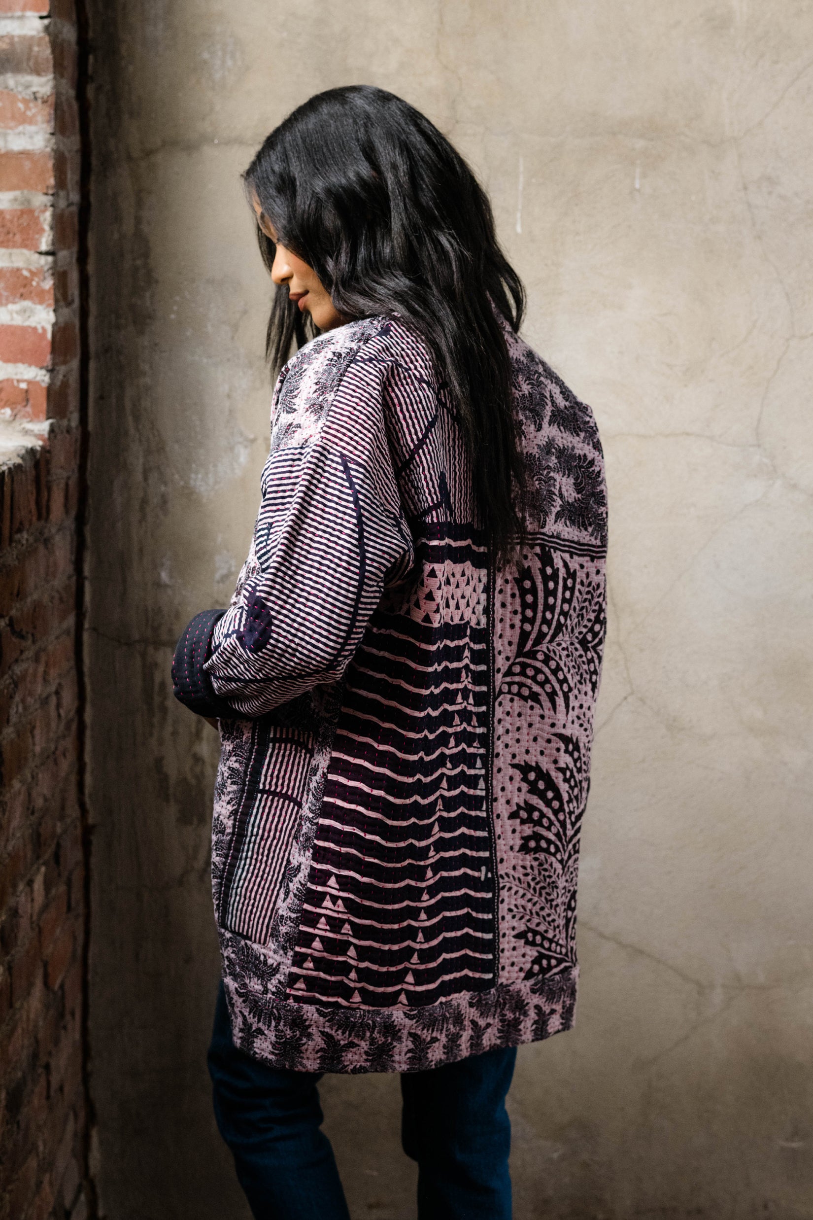 Ethically sourced and handmade with high-quality, upcycled vintage cotton saris, these one-of-a-kind products feature bold, colorful prints. Each kantha product is signed by the woman artisan maker right on the tag. Purposefully made, eco-friendly, and collectible. Shop our selection of kantha quilts, cotton scarves, kantha quilted jackets, lumbar pillows, and more.