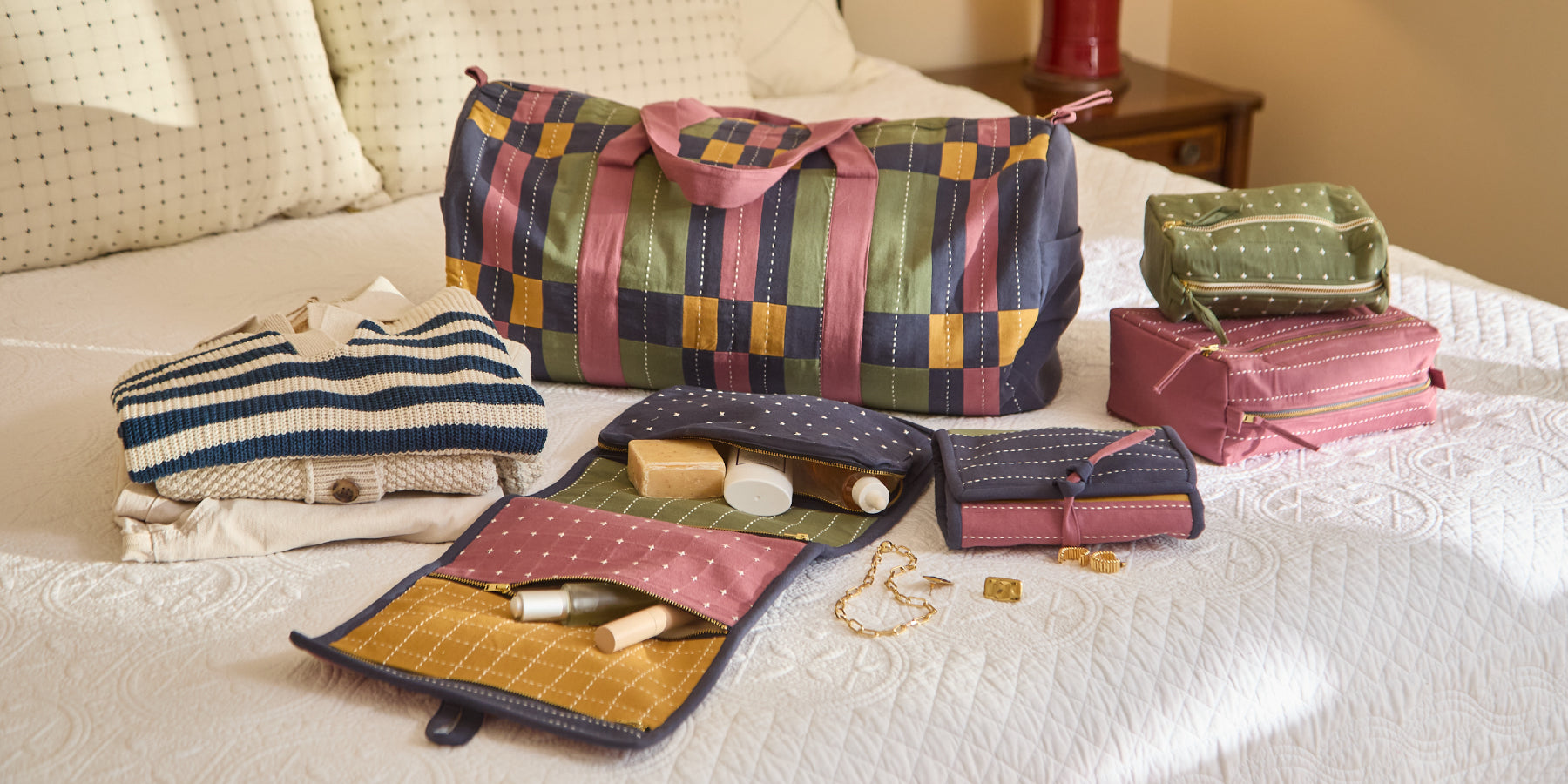 Each organizer features four thoughtfully designed compartments to keep your essentials neatly in place, whether you’re packing jewelry, chargers, makeup, and hair accessories, or larger must-haves like shampoo bottles and a hairbrush.