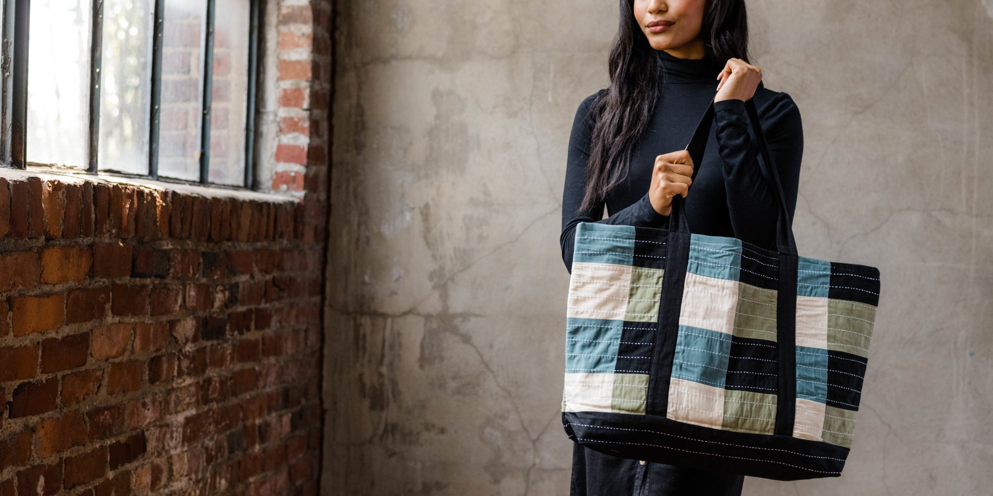 Tiny rows of hand-stitching on top of colorblock paneling adds visual interest.