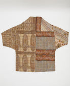 This sandy tan floral cocoon quilted jacket is truly unique. No two are exactly alike, making it a one-of-a-kind wearable art piece. Constructed from 6 layers of upcycled cotton saris with all-over hand-stitching, this long quilted jacket will make you feel just like you’re cuddling up with your favorite quilt. Featuring two large front patch pockets for convenience and a modern cocoon neckline, this jacket will be one you reach for again and again. Layer it over a t-shirt or your favorite sweater for an effortless feel.