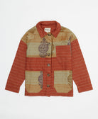 Meet your new favorite layer—the Quilted Chore Jacket in Rust! Made from 100% organic cotton and featuring one-of-a-kind vintage patchwork from repurposed cotton saris in a beige and eggplant purple oversized paisley print, this jacket is like wearing a cozy piece of art. With three patch pockets, hand embroidery, and tortoise-shell colored buttons for a dash of charm, it’s got personality in every stitch. Lightweight but sneakily warm, this rust chore jacket is perfect for throwing over a tee or sweater when fall or spring breezes call for something extra. Each jacket is totally unique, just like you!