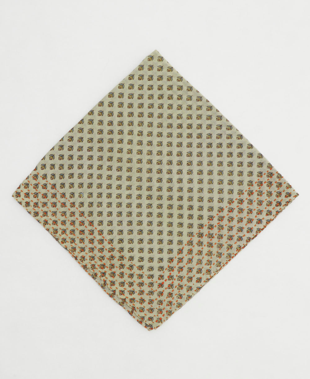 Add a vintage touch to your look with our one-of-a-kind cotton bandana. Crafted from upcycled cotton saris and finished with kantha-stitched edges, each piece is unique. Wear it as a head wrap, neckerchief, or versatile eco-friendly accessory.