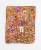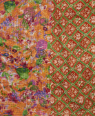 Elevate your bedding with our twin kantha quilt featuring a beautiful orange and green checkered pattern, meticulously hand-stitched from 6 layers of vintage cotton saris. Versatile as both an oversized throw and a lightweight bed layer, this kantha quilt is a unique work of art, boasting a one-of-a-kind pattern you won’t find anywhere else. Pride in quality shines through in every stitch of this kantha blanket. Snuggle up in softness and experience unparalleled comfort.