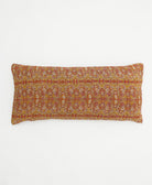 This handcrafted lumbar pillow was created from upcycled vintage cotton saris. With a unique design on each side, it's simple to switch up your decor to match the season or your state of mind. Complete with delightful hand-stitched detailing and a soft down feather insert, this lumbar throw pillow brings a special touch to any bed or sofa.