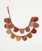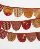 This unique scallop banner is crafted from repurposed vintage cotton saris, utilizing excess materials to provide an eco-friendly option for elevating your upcoming event or gathering. Adding this fabric garland will infuse any area with a pop of color, and each piece is truly unique. This reusable party decoration can be used for years to come, whether hung over a mantel, in a doorway, or on a wall to create a lively celebratory atmosphere.