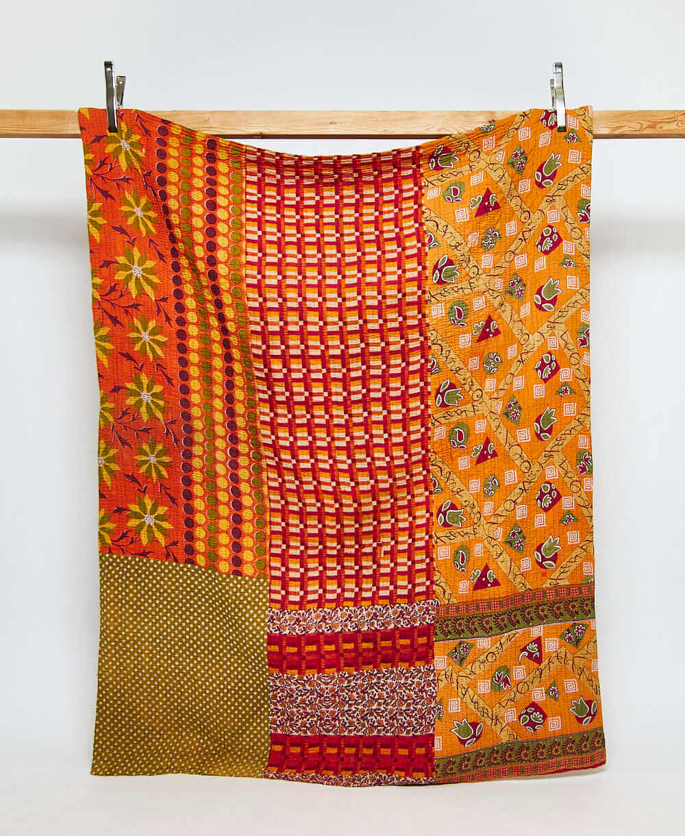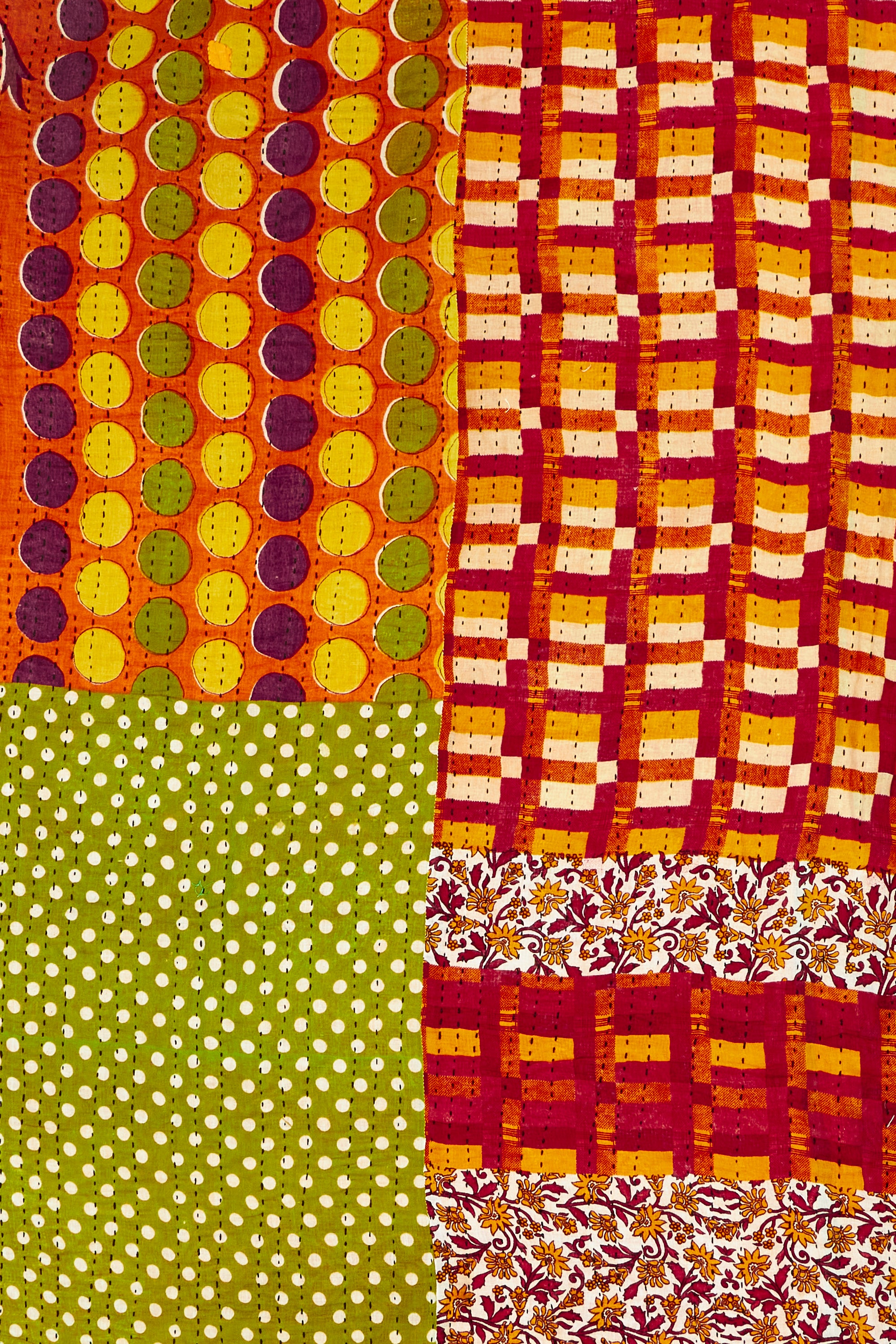 Celebrate the cozy beauty of autumn with handcrafted pieces inspired by the warm, earthy tones of falling leaves. From richly layered kantha quilts and quilted jackets to functional yet stylish kitchen aprons, long cotton scarves, and versatile bandanas, each piece is designed in hues of rust, orange, brown, and tan. Thoughtfully made from vintage cotton, these timeless textiles capture the season’s essence, inviting warmth, comfort, and everyday elegance into your home and wardrobe.