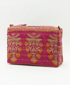 Pretty and practical with function in mind, this large toiletry bag is reimagined from one-of-a-kind vintage cotton saris. Featuring a spacious canvas-lined interior for added structure and an exterior zip pocket for extra storage, this vintage kantha toiletry bag easily tucks away in your suitcase, gym bag, or duffle bag. The large size effortlessly holds shower necessities and even a full-size hair brush! Complete your travel set by mixing and matching patterns for a look all your own by pairing it with a Medium Kantha Toiletry Bag.