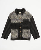 Meet your new favorite layer—the Quilted Chore Jacket in Charcoal! Made from 100% organic cotton and featuring one-of-a-kind vintage patchwork from repurposed cotton saris in a navy floral and paisley print, this jacket is like wearing a cozy piece of art. With three patch pockets, hand embroidery, and tortoise-shell colored buttons for a dash of charm, it’s got personality in every stitch. Lightweight but sneakily warm, this black chore jacket is perfect for throwing over a tee or sweater when fall or spring breezes call for something extra. Each jacket is totally unique, just like you!
