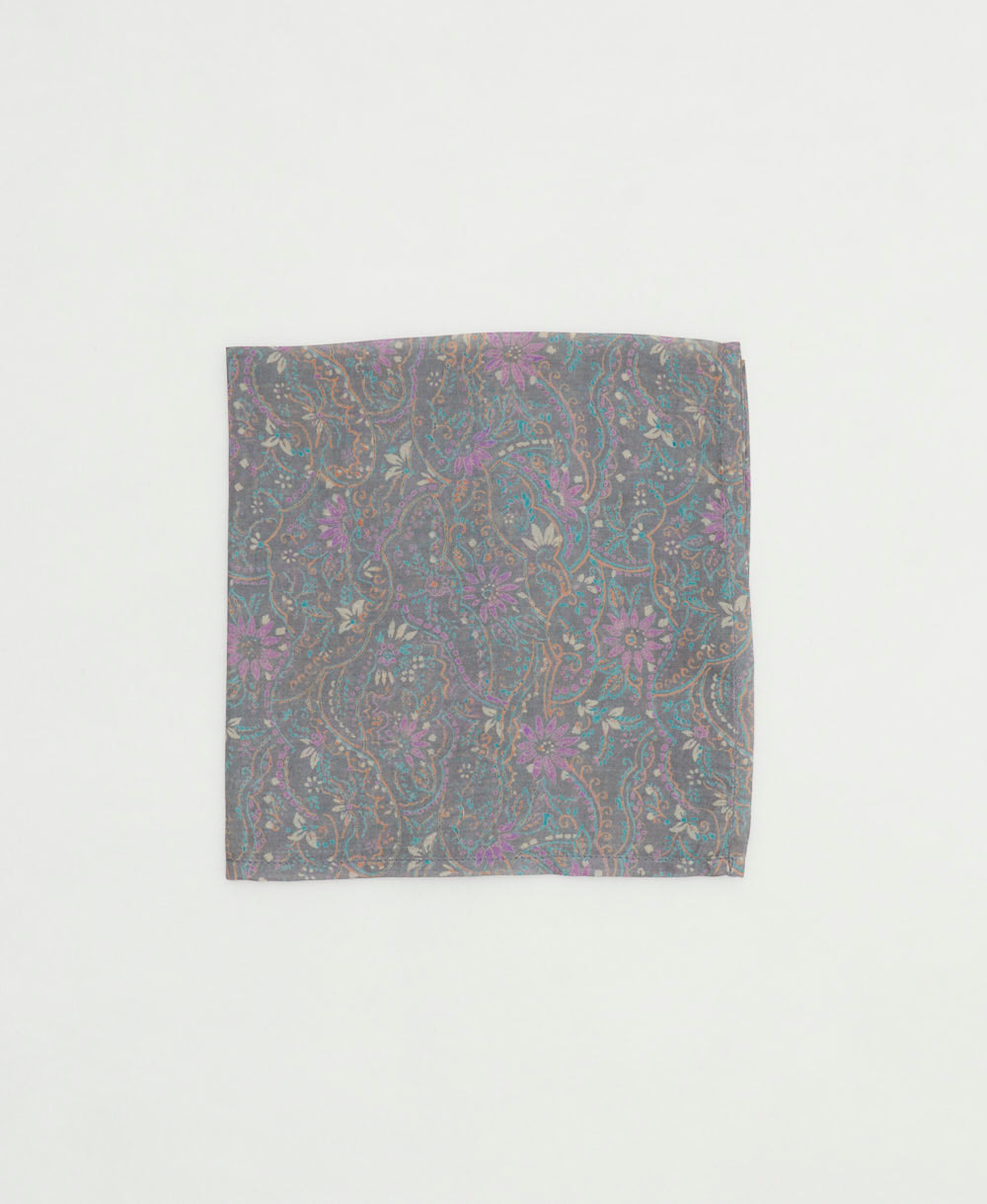 Crafted from repurposed silk saris, this silk pocket square is both elegant and sustainable, making it a one-of-a-kind accessory. It can also be styled as a hair accessory when tied in your hair for added versatility.