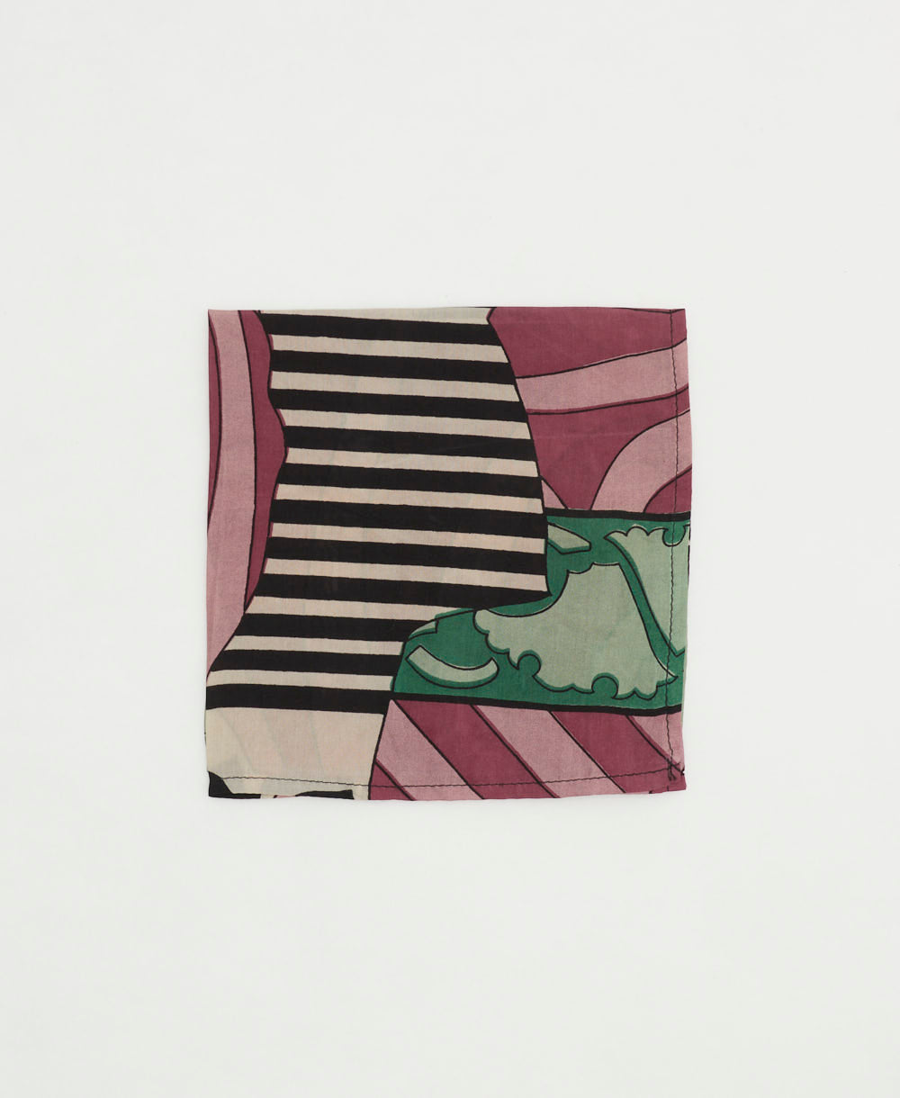 Crafted from repurposed silk saris, this silk pocket square is both elegant and sustainable, making it a one-of-a-kind accessory. It can also be styled as a hair accessory when tied in your hair for added versatility.