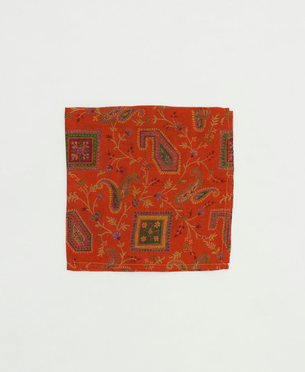 Crafted from repurposed silk saris, this silk pocket square is both elegant and sustainable, making it a one-of-a-kind accessory. It can also be styled as a hair accessory when tied in your hair for added versatility.