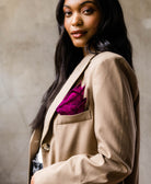 Crafted from repurposed silk saris, this silk pocket square is both elegant and sustainable, making it a one-of-a-kind accessory. It can also be styled as a hair accessory when tied in your hair for added versatility.