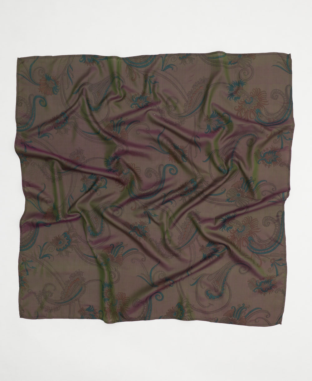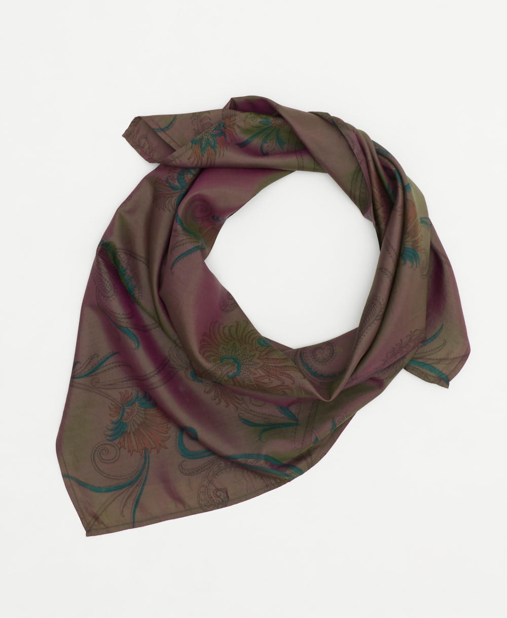 Elevate your everyday style with this vintage silk scarf. Crafted from luxurious upcycled silk saris, this eco-friendly accessory is as unique as you are. Its versatile size allows you to wear it in multiple ways—drape it as a headscarf, tie it around your neck, or style it any way you like. Look and feel like a timeless work of art with this one-of-a-kind silk square scarf that you'll reach for again and again.