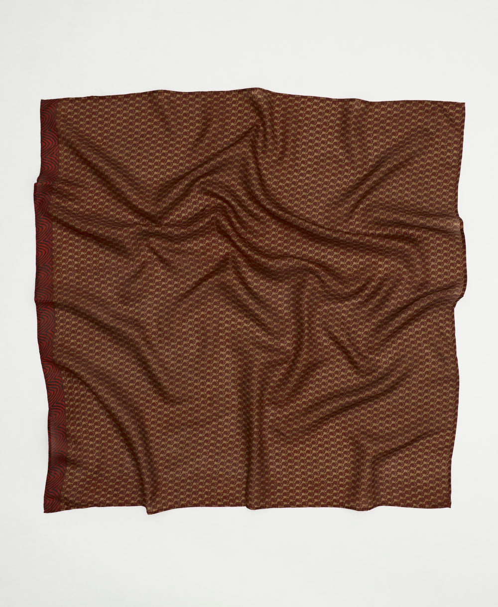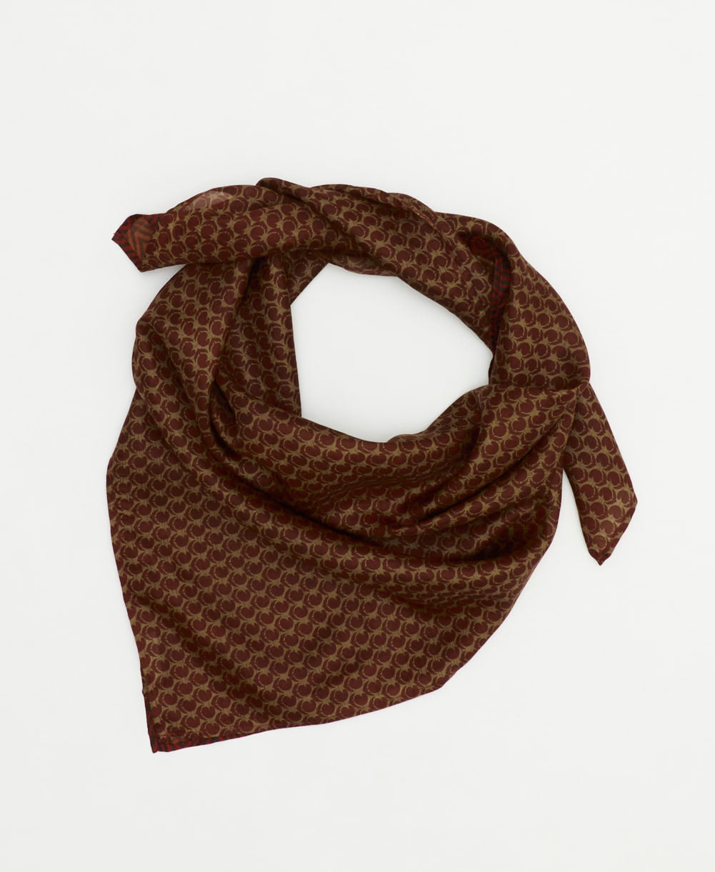 Elevate your everyday style with this vintage silk scarf. Crafted from luxurious upcycled silk saris, this eco-friendly accessory is as unique as you are. Its versatile size allows you to wear it in multiple ways—drape it as a headscarf, tie it around your neck, or style it any way you like. Look and feel like a timeless work of art with this one-of-a-kind silk square scarf that you'll reach for again and again.