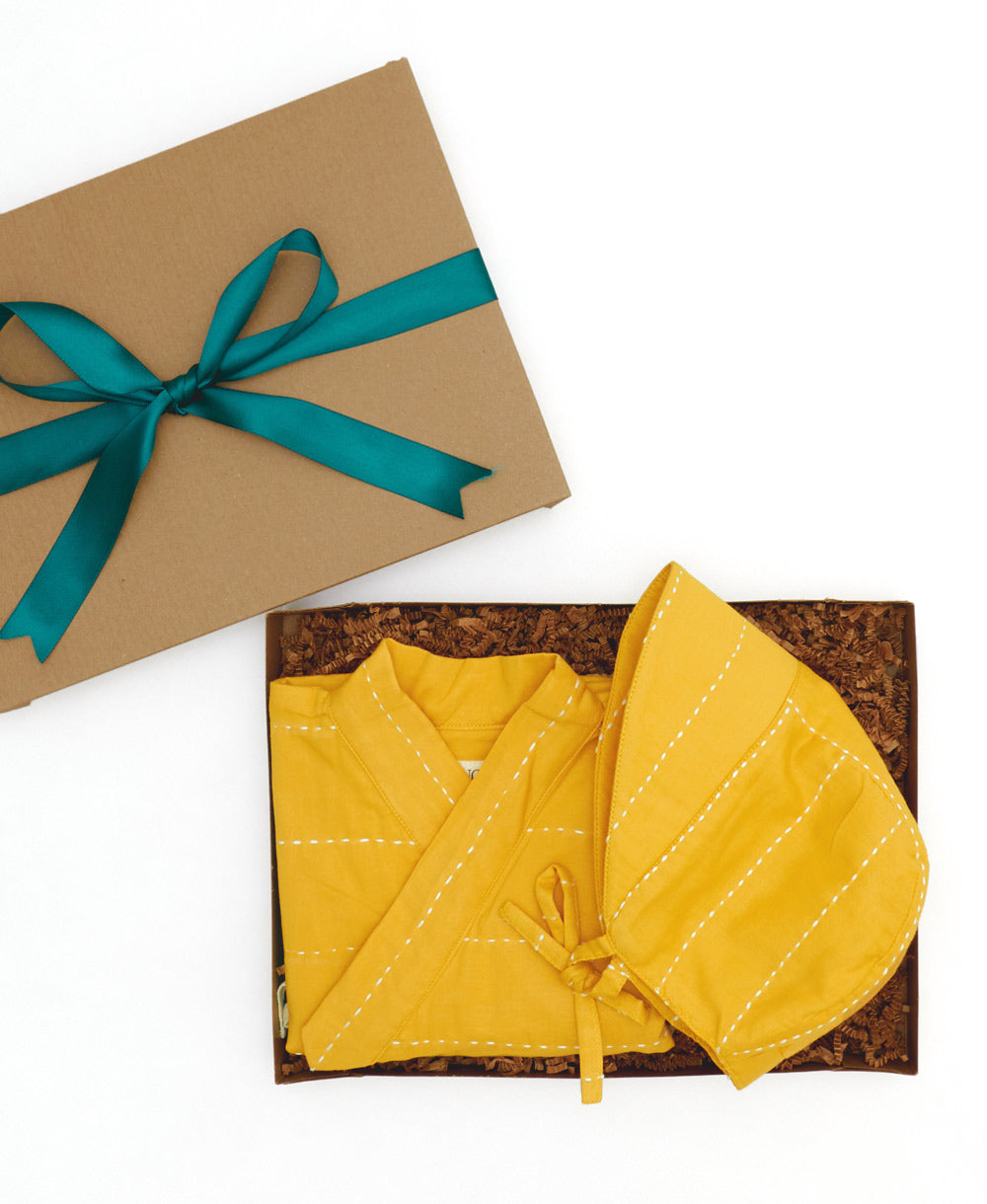 Welcome the newest little love with a gift that’s as thoughtful as it is beautiful. Our Newborn Gift Box features a matching bonnet and wrap top set made from 100% organic cotton and AZO-free dyes, designed to keep baby cozy, stylish, and safe through every season.