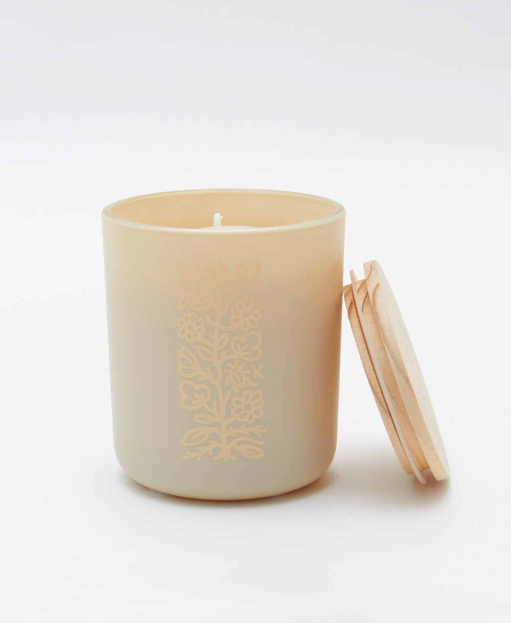 The 15 oz Candle is hand-poured in small batches in the USA and available in your choice of three soothing scents. Housed in a reusable glass jar, each candle burns clean and long, bringing warmth and serenity to any space.