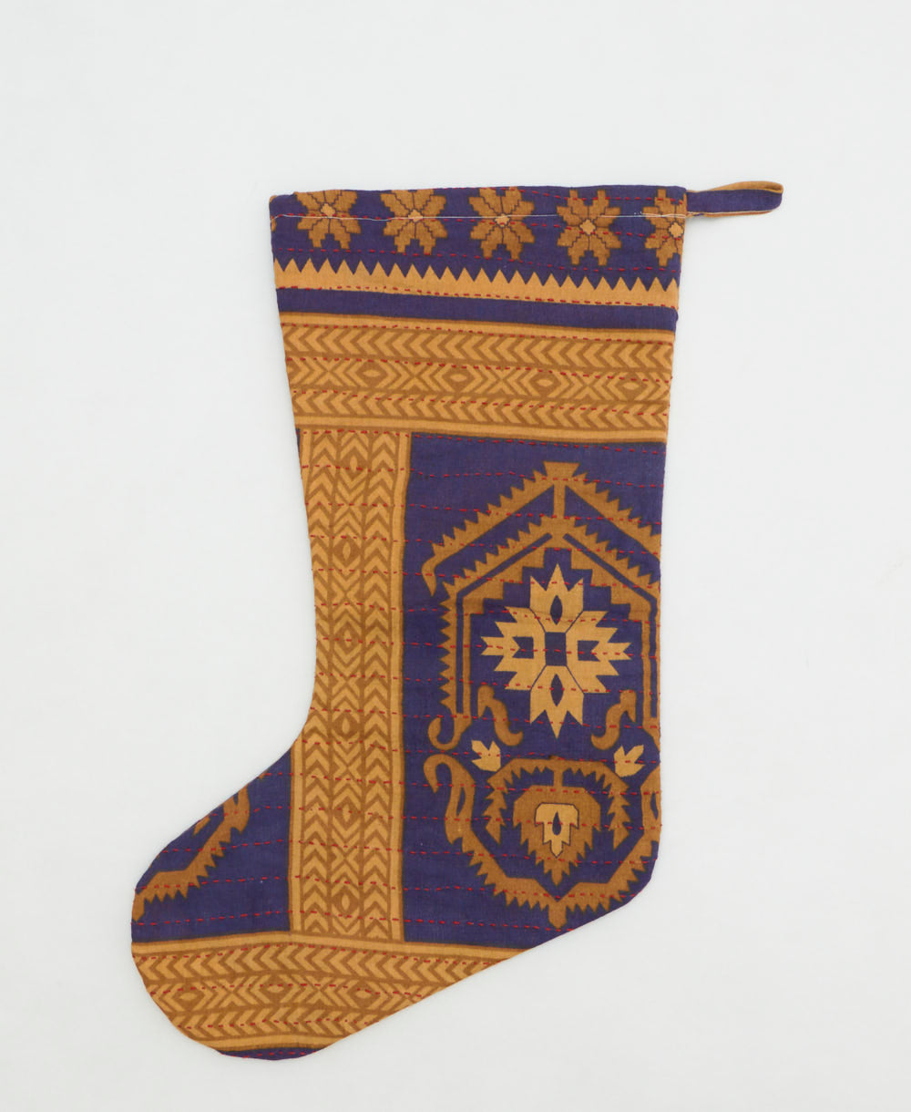 Add the perfect finishing touch to your mantel this holiday season with our one-of-a-kind Kantha holiday stocking. Handcrafted from upcycled cotton saris, each stocking is as unique as the person it’s for—no two are alike. Featuring a convenient hanging loop and playful pom-pom accents, this stocking is not only charming but sturdy enough to hold small gifts, candles, and more. Celebrate holiday gatherings with a stocking that brings both character and cheer to your home, making it a timeless keepsake for years to come.