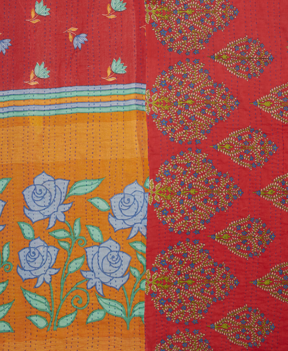 Elevate your bedding with our twin kantha quilt, meticulously hand-stitched from 6 layers of vintage cotton saris. Versatile as both an oversized throw and a lightweight bed layer, this kantha quilt is a unique work of art, boasting a one-of-a-kind pattern you won’t find anywhere else. Pride in quality shines through in every stitch of this kantha blanket. Snuggle up in softness and experience unparalleled comfort.