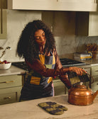 This colorblock potholder is made of 100% organic cotton and features a layer of heat-resistant cotton batting to easily withstand heat. Use it to handle hot tea kettles, baking sheets, or as a trivet to protect tables and counters from scorching. It also features a hanging loop for easy storage when not in use. Low-impact dyes ensure a clean and sustainable kitchen.