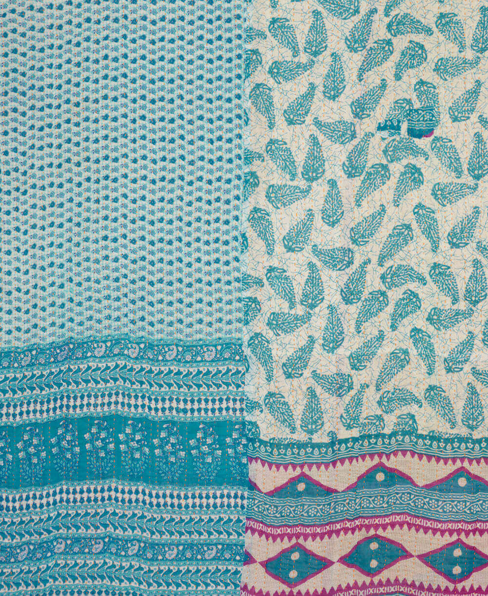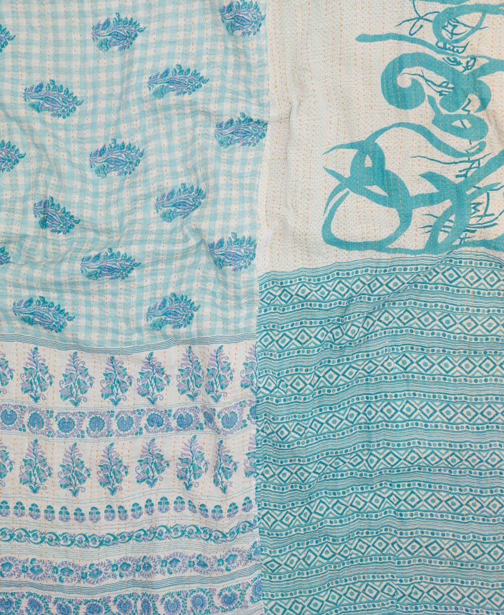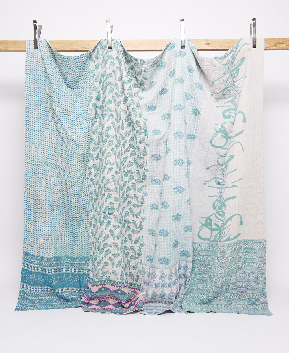 Alternatively, our king kantha quilts are perfect for adding a touch of modern boho flair to your space. Each quilt is meticulously crafted using traditional Indian kantha techniques, where layers of cotton saris are delicately stitched together by hand. This results in a lightweight quilt that's ideal for all seasons, providing just the right amount of warmth and coziness without feeling heavy or bulky.