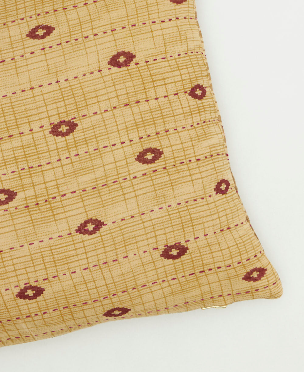 This handcrafted small pillow was created from upcycled vintage cotton saris. With a unique design on each side, it's simple to switch up your decor to match the season or your state of mind. Complete with delightful hand-stitched detailing and a soft down feather insert, this small lumbar pillow brings a special touch to any bed or sofa.