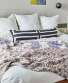 Wrap yourself in cozy charm and comfort with this beautiful Kantha quilt. Each quilt is handmade with care and skill, featuring neat rows of straight stitches that bind together six layers of vintage cotton saris—light, muslin-like fabrics that feel incredibly soft to the touch.
