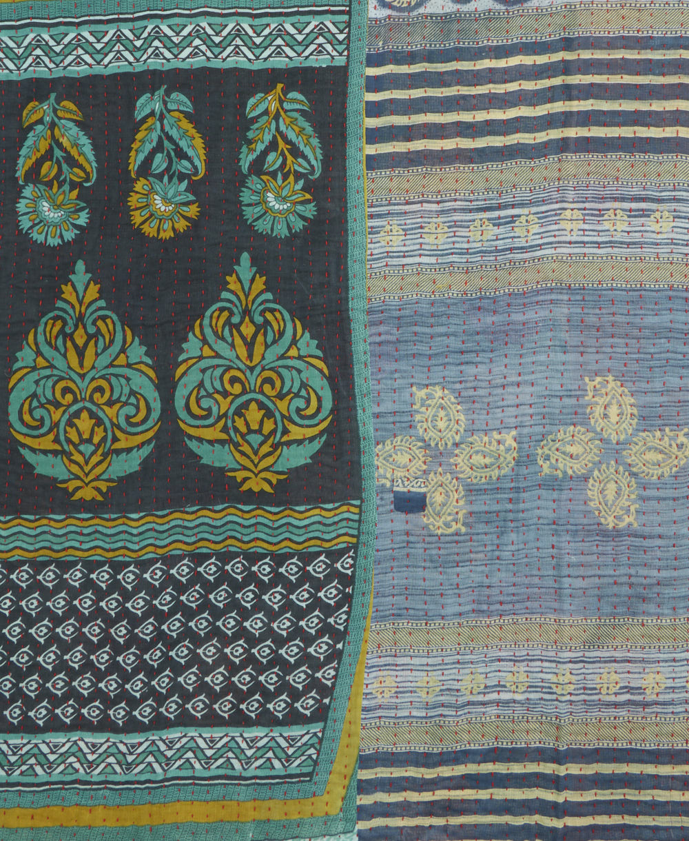 Kantha blankets are cherished Indian quilts, known for their eco-friendly nature and vibrant, unique patterns. This centuries-old craft turns patchwork cloth into stunning works of art, made from repurposed rags. Our Kantha blankets stand out for their amazing craftsmanship and quality. No two are alike, and each quilt is signed by the artisan, adding a special, personal touch to your unique piece.