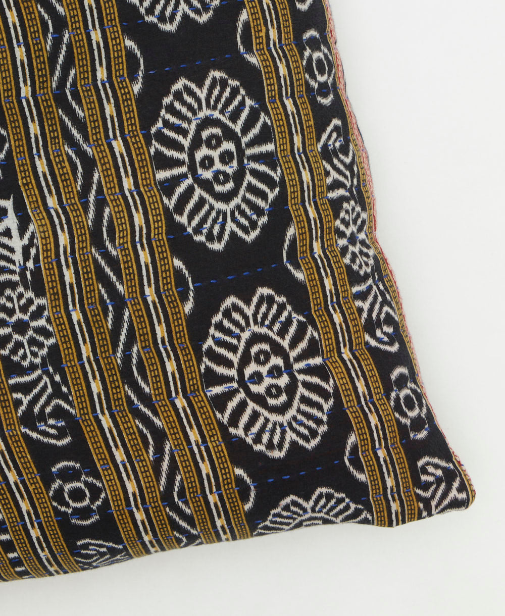 This handcrafted throw pillow was created from upcycled vintage cotton saris. With a unique design on each side, it's simple to switch up your decor to match the season or your state of mind. Complete with delightful hand-stitched detailing and a soft down feather insert, this colorful throw pillow brings a special touch to any bed or sofa.