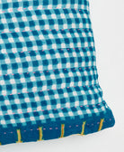 The front of this handcrafted sky blue small pillow features a gingham print created from upcycled vintage cotton saris. With a unique design on each side, it's simple to switch up your decor to match the season or your state of mind. Complete with delightful hand-stitched detailing and a soft down feather insert, this small lumbar pillow brings a special touch to any bed or sofa.