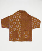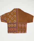 This camel and olive bold floral cocoon quilted jacket is truly unique. No two are exactly alike, making it a one-of-a-kind wearable art piece. Constructed from 6 layers of upcycled cotton saris with all-over hand-stitching, this long quilted jacket will make you feel just like you’re cuddling up with your favorite quilt. Featuring two large front patch pockets for convenience and a modern cocoon neckline, this jacket will be one you reach for again and again. Layer it over a t-shirt or your favorite sweater for an effortless feel.