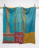 This queen kantha quilt is expertly hand-stitched from start to finish using layers of the highest quality vintage cotton saris. Every stitch reflects our dedication to craftsmanship, ensuring each kantha blanket is not only a functional item but also a work of art. With each quilt being completely one-of-a-kind and unique in pattern, it becomes a statement piece in any room it graces. The signature of the artisan maker on the tag also adds a personal connection, allowing you to appreciate the hands that created it.