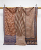 This queen kantha quilt is expertly hand-stitched from start to finish using layers of the highest quality vintage cotton saris. Every stitch reflects our dedication to craftsmanship, ensuring each kantha blanket is not only a functional item but also a work of art. With each quilt being completely one-of-a-kind and unique in pattern, it becomes a statement piece in any room it graces. The signature of the artisan maker on the tag also adds a personal connection, allowing you to appreciate the hands that created it.
