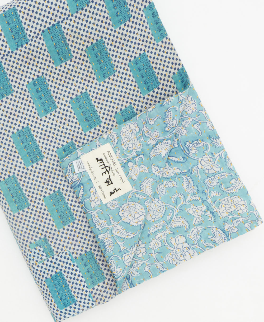 Kantha blankets are cherished Indian quilts, known for their eco-friendly nature and vibrant, unique patterns. This centuries-old craft turns patchwork cloth into stunning works of art, made from repurposed rags. Our Kantha blankets stand out for their amazing craftsmanship and quality. No two are alike, and each quilt is signed by the artisan, adding a special, personal touch to your unique piece.