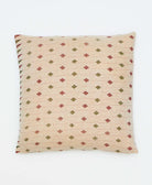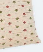 The front of this handcrafted beige throw pillow features a red and green diamond print created from upcycled vintage cotton saris. With a unique design on each side, it's simple to switch up your decor to match the season or your state of mind. Complete with delightful hand-stitched detailing and a soft down feather insert, this colorful throw pillow pillow brings a special touch to any bed or sofa.