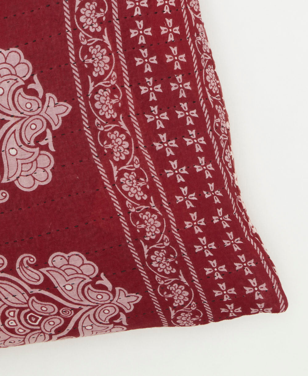 This handcrafted throw pillow was created from upcycled vintage cotton saris. With a unique design on each side, it's simple to switch up your decor to match the season or your state of mind. Complete with delightful hand-stitched detailing and a soft down feather insert, this colorful throw pillow brings a special touch to any bed or sofa.