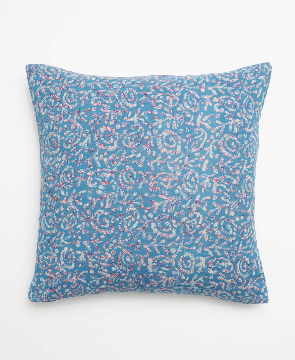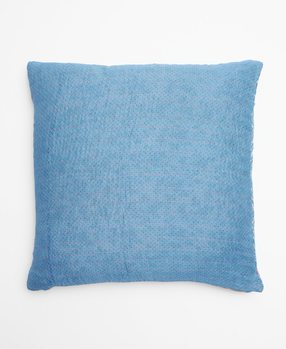 This handcrafted throw pillow was created from upcycled vintage cotton saris. With a unique design on each side, it's simple to switch up your decor to match the season or your state of mind. Complete with delightful hand-stitched detailing and a soft down feather insert, this colorful throw pillow brings a special touch to any bed or sofa.