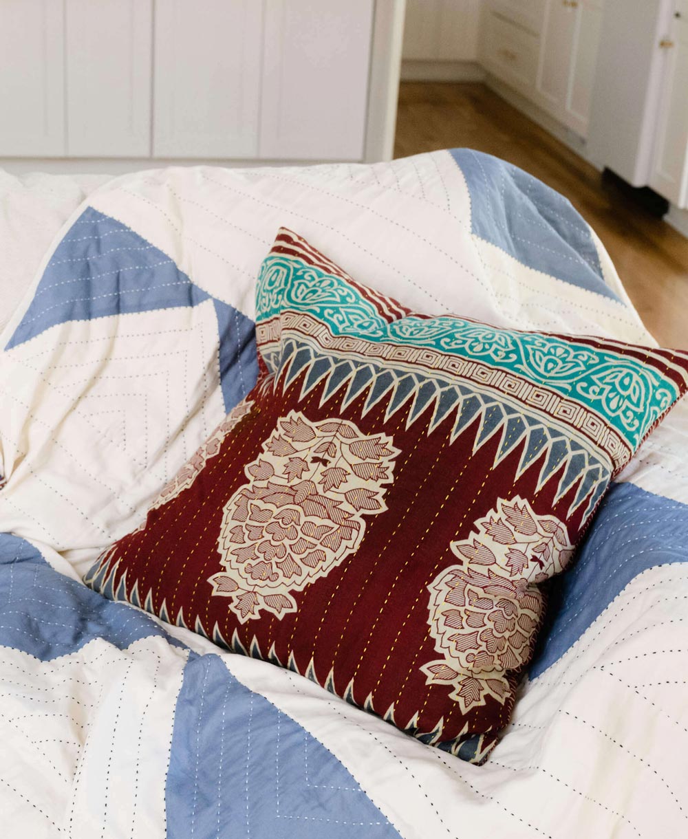 From organic cotton square pillows to one-of-a-kind vintage pillows, each one is skillfully handcrafted in India by women artisans and finished with contemporary hand embroidery. Shop our bestselling square throw pillows in 2 sizes — 22" x 22" or 18" x 18".