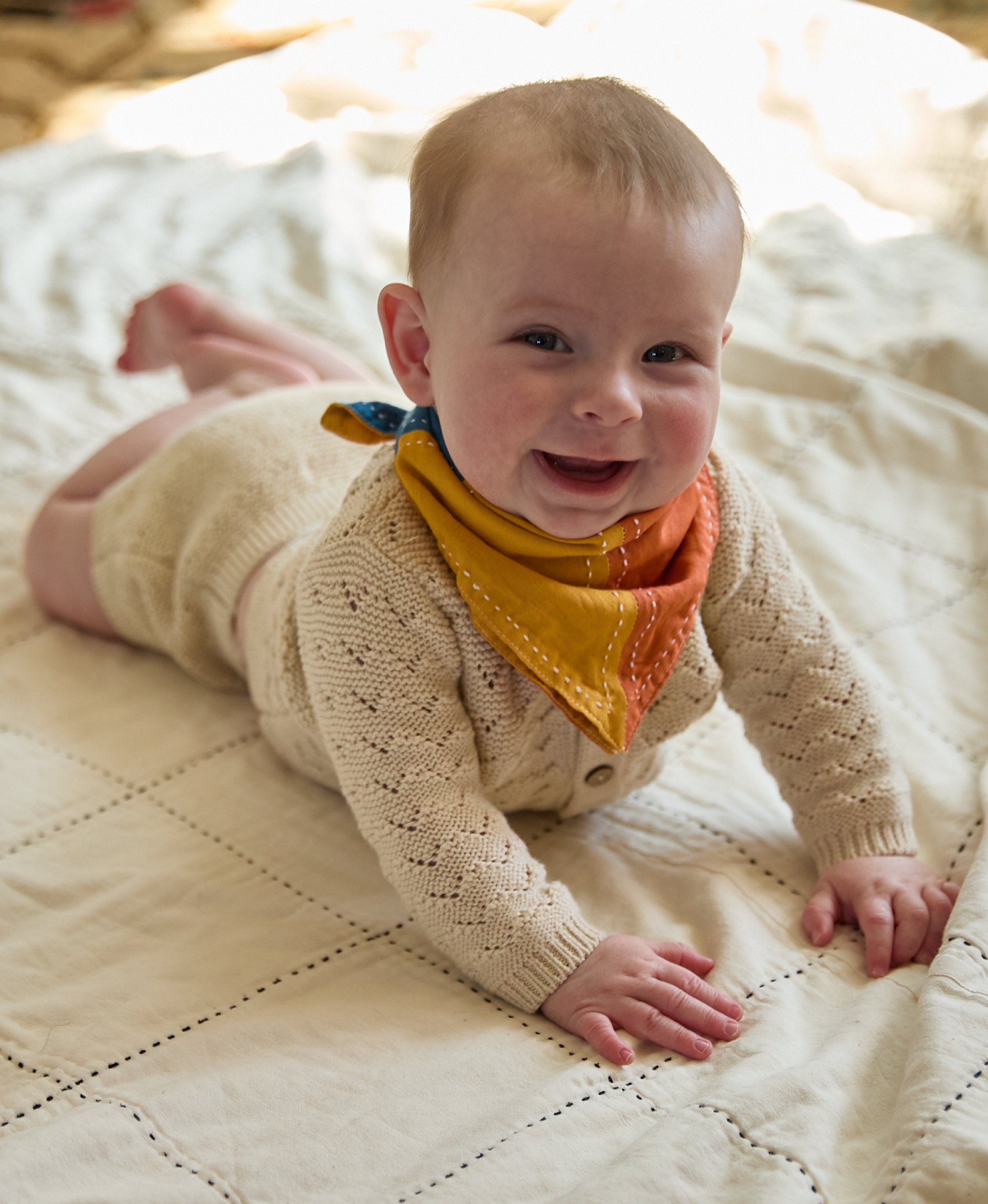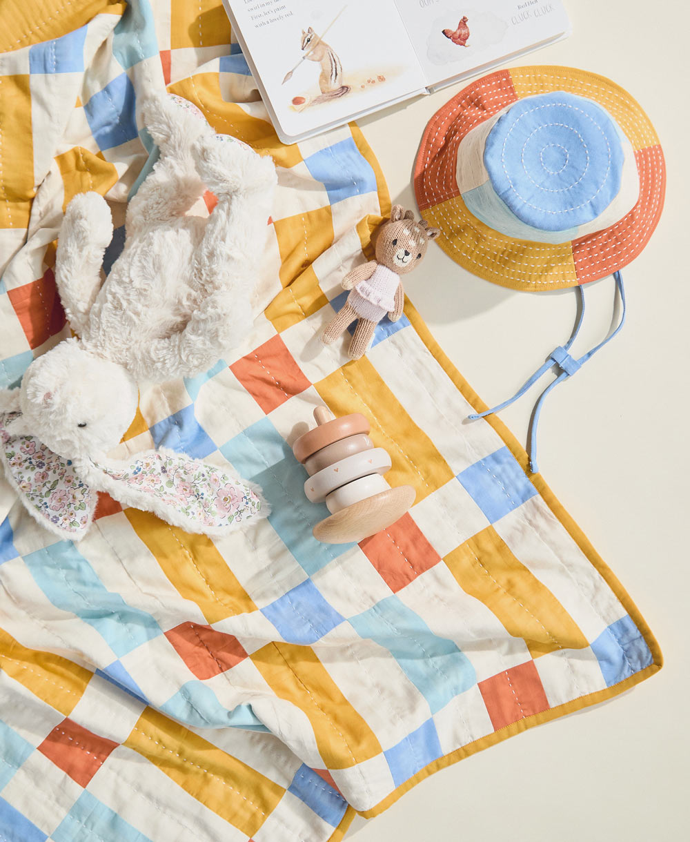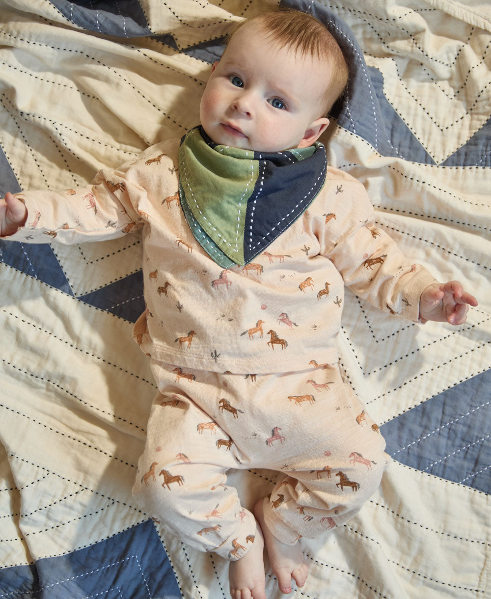 Celebrate the arrival of a new bundle of joy in style. Whether you're searching for a sustainable baby shower gift for the parents-to-be or something special for your own little one, our selection of eco-friendly baby gifts is perfect. Handmade with love by women artisans using the highest quality organic cotton and dyed with non-toxic, AZO-free dyes, our baby quilts and handmade stuffed animals make a charming addition to any nursery. We also offer a range of decorative wall banners and baby quilts crafted from upcycled vintage cotton, adding an eco-friendly vibe to your nursery decor.
