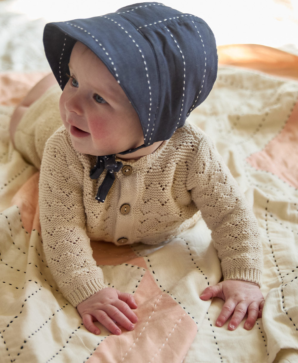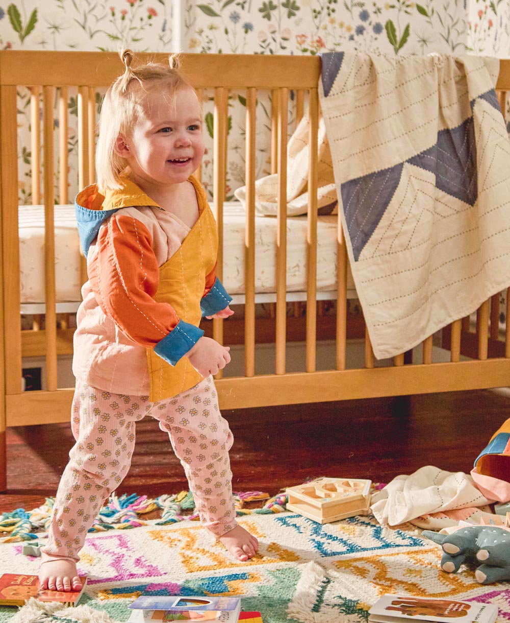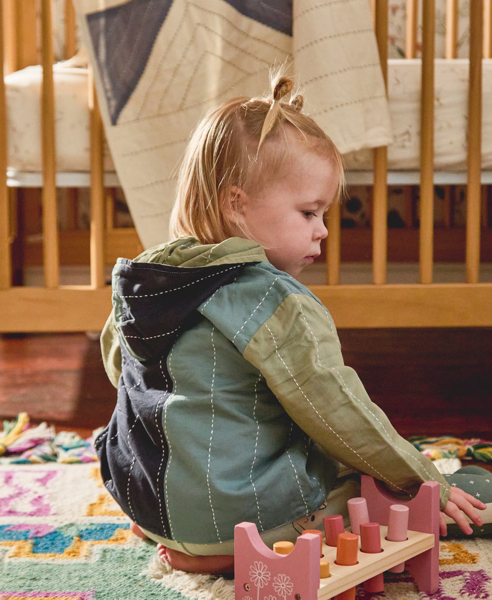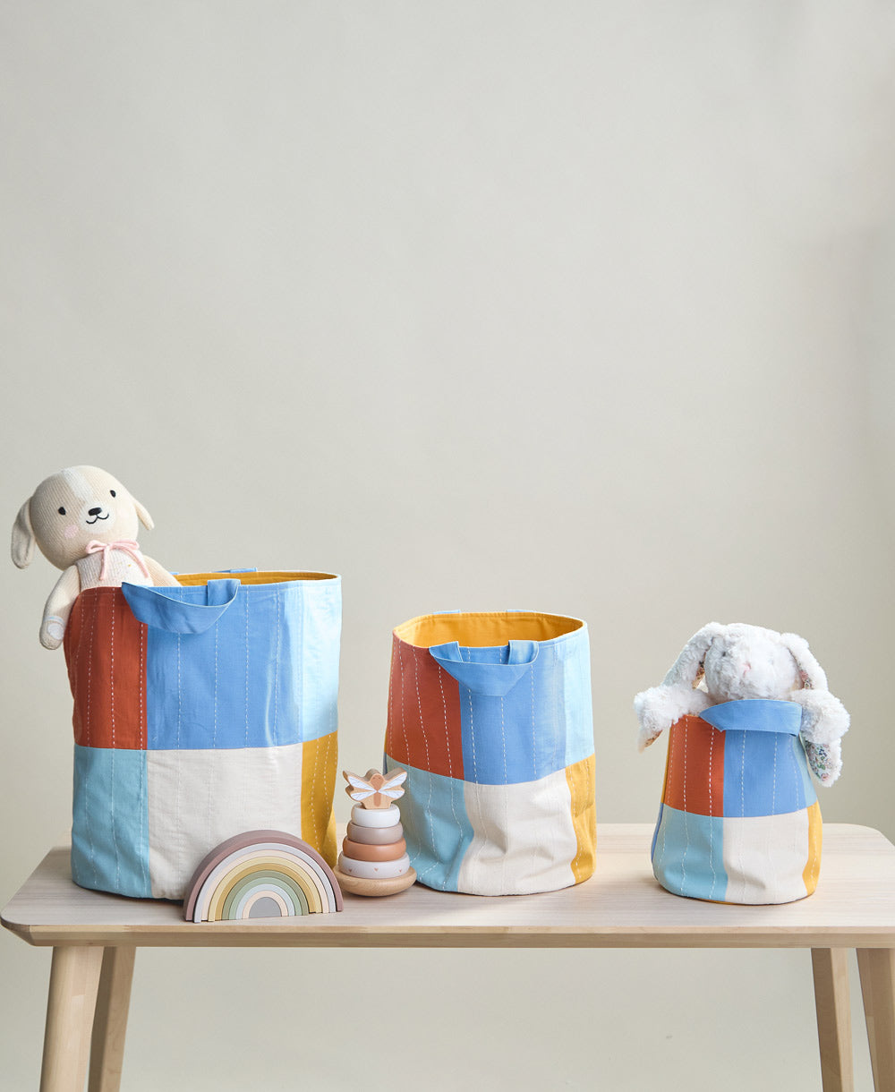 Celebrate the arrival of a new bundle of joy in style. Whether you're searching for a sustainable baby shower gift for the parents-to-be or something special for your own little one, our selection of eco-friendly baby gifts is perfect. Handmade with love by women artisans using the highest quality organic cotton and dyed with non-toxic, AZO-free dyes, our baby quilts and handmade stuffed animals make a charming addition to any nursery. We also offer a range of decorative wall banners and baby quilts crafted from upcycled vintage cotton, adding an eco-friendly vibe to your nursery decor.