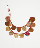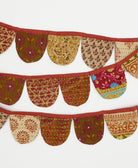 This unique scallop banner is crafted from repurposed vintage cotton saris, utilizing excess materials to provide an eco-friendly option for elevating your upcoming event or gathering. Adding this fabric garland will infuse any area with a pop of color, and each piece is truly unique. This reusable party decoration can be used for years to come, whether hung over a mantel, in a doorway, or on a wall to create a lively celebratory atmosphere.