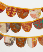 This unique scallop banner is crafted from repurposed vintage cotton saris, utilizing excess materials to provide an eco-friendly option for elevating your upcoming event or gathering. Adding this fabric garland will infuse any area with a pop of color, and each piece is truly unique. This reusable party decoration can be used for years to come, whether hung over a mantel, in a doorway, or on a wall to create a lively celebratory atmosphere.