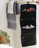 Keep your jewelry and smaller toiletries organized and tangle-free with this stylish hanging organizer. Featuring multiple compartments for separation, it folds conveniently for travel and hangs neatly at your destination for easy access to your essentials. Perfect for keeping your accessories in order during adventures and everyday life.