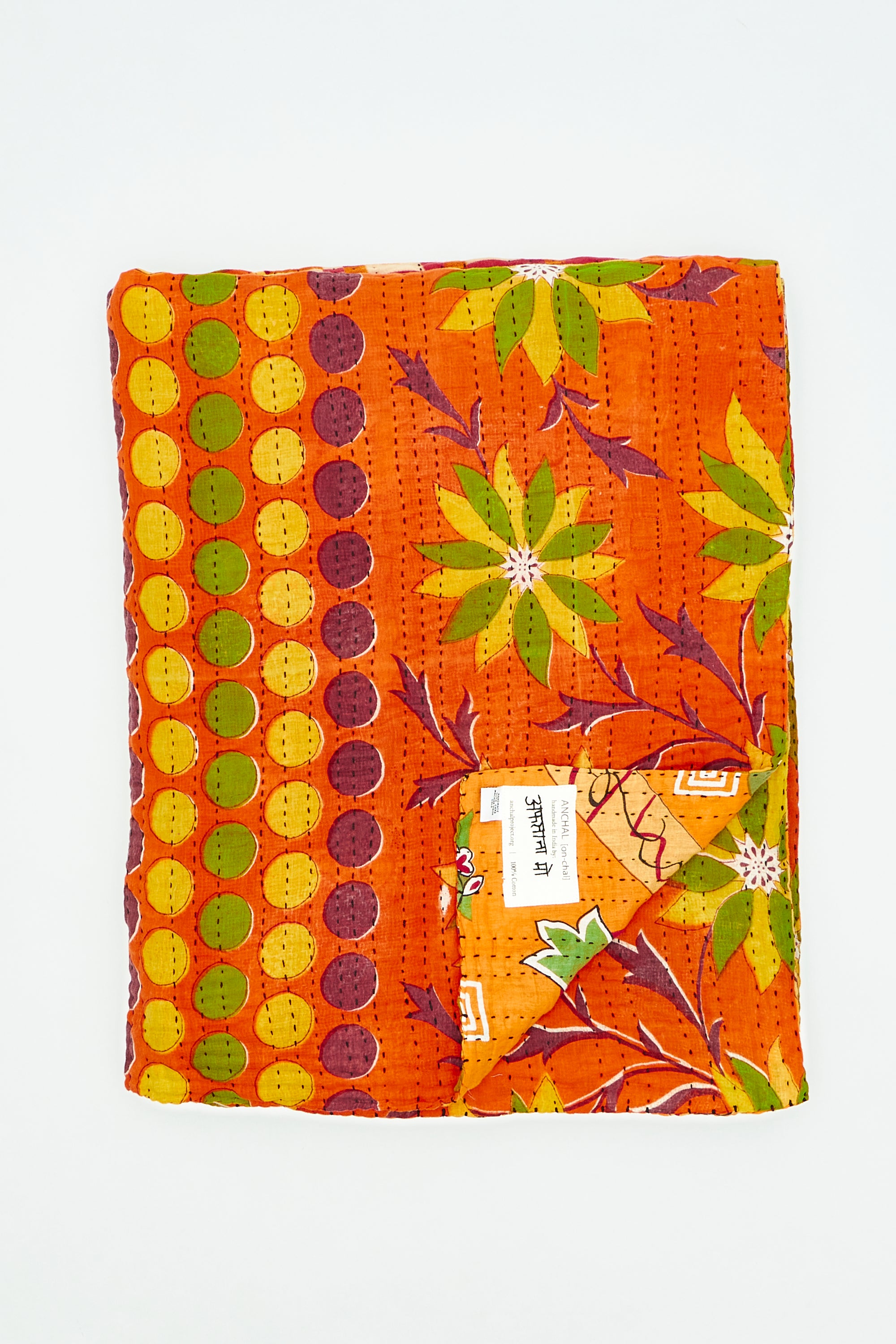 Transform your bedroom décor with our unique collection of Kantha Twin Quilts, each one is a masterpiece of artisan craftsmanship and vibrant charm. Handcrafted from six layers of vintage cotton saris, every twin-size quilt is a one-of-a-kind creation, showcasing a rich tapestry of colors and patterns held together with hundreds of straight running stitches.