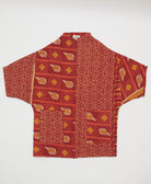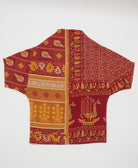 This burgundy geometric cocoon quilted jacket is truly unique. No two are exactly alike, making it a one-of-a-kind wearable art piece. Constructed from 6 layers of upcycled cotton saris with all-over hand-stitching, this long quilted jacket will make you feel just like you’re cuddling up with your favorite quilt. Featuring two large front patch pockets for convenience and a modern cocoon neckline, this jacket will be one you reach for again and again. Layer it over a t-shirt or your favorite sweater for an effortless feel.
