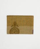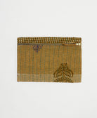 Stay organized and stylish with our one-of-a-kind pouch made from unique vintage cotton saris. Featuring a tan and brown geometric pattern, this small pouch is perfect for holding all your essentials. Use it as a colorful statement-making clutch, or store loose items like pens, makeup, or receipts—anything that might roll around at the bottom of your bag. Toss it in your tote to stay organized. This versatile zippered pouch will quickly become your go-to accessory.