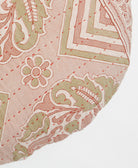 This one-of-a-kind round pillow is handcrafted in India from unique upcycled vintage saris and adorned with rows of hand embroidery by skilled women artisans for added texture. The removable down feather insert ensures easy cleaning and provides a luxuriously plush feel. Mix and match different styles to add a modern boho touch to your bedroom or living room.