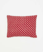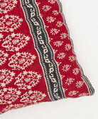 The front of this handcrafted cherry red small pillow features a cream and black paisley print created from upcycled vintage cotton saris. With a unique design on each side, it's simple to switch up your decor to match the season or your state of mind. Complete with delightful hand-stitched detailing and a soft down feather insert, this small lumbar pillow brings a special touch to any bed or sofa.