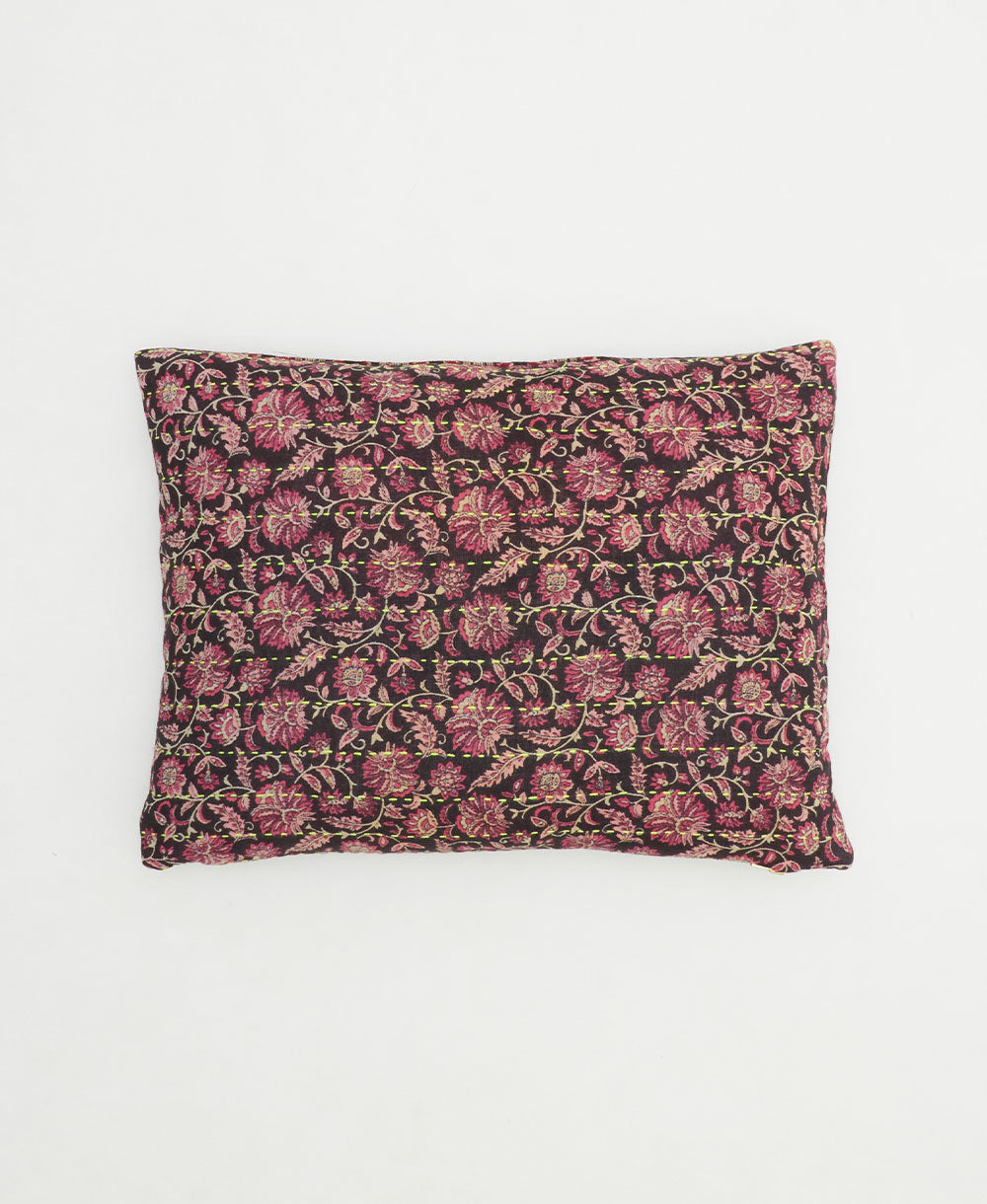 This handcrafted small pillow is created from upcycled vintage cotton saris. With a unique design on each side, it's simple to switch up your decor to match the season or your state of mind. Complete with delightful hand-stitched detailing and a soft down feather insert, this small lumbar pillow brings a special touch to any bed or sofa.