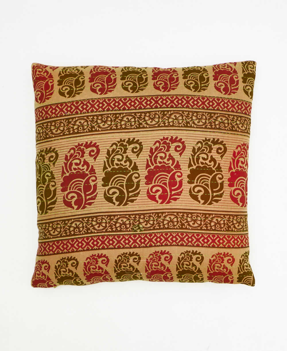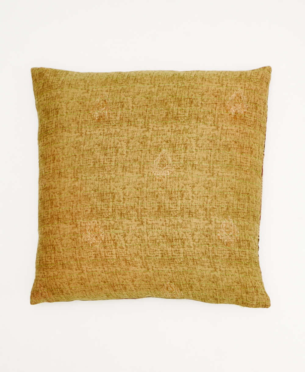 The front of this handcrafted light green throw pillow features an abstract print created from upcycled vintage cotton saris. With a unique design on each side, it's simple to switch up your decor to match the season or your state of mind. Complete with delightful hand-stitched detailing and a soft down feather insert, this colorful throw pillow pillow brings a special touch to any bed or sofa.