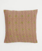 This handcrafted throw pillow was created from upcycled vintage cotton saris. With a unique design on each side, it's simple to switch up your decor to match the season or your state of mind. Complete with delightful hand-stitched detailing and a soft down feather insert, this colorful throw pillow brings a special touch to any bed or sofa.